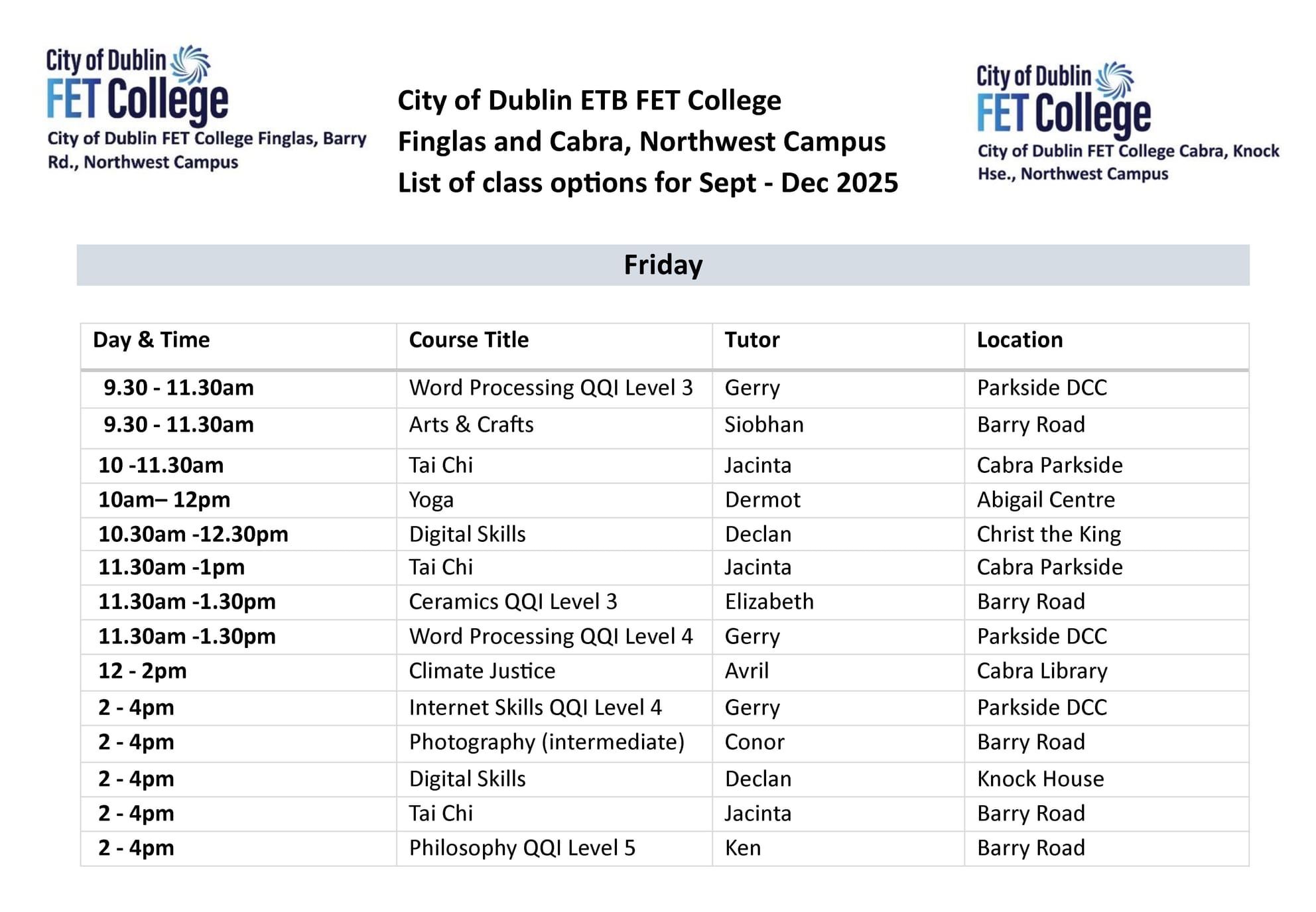 City of Dublin FET College AES Finglas and Cabra